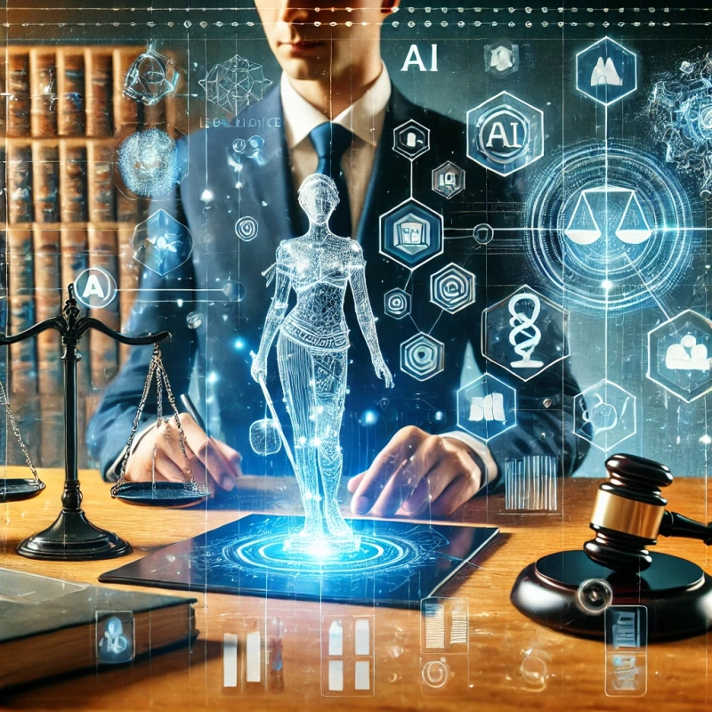DALL·E 2025-03-04 15.24.48 – A futuristic law office embracing digital transformation. The scene features a modern office with holographic legal documents, AI-powered assistants,