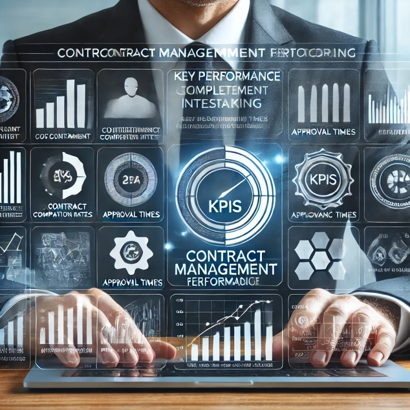 DALL·E 2025-02-04 16.49.50 – A professional business-themed infographic illustrating contract management performance tracking. The image includes a digital dashboard displaying ke